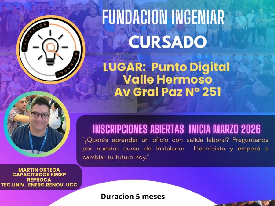 La Fundación Ingeniar, en conjunto con el Municipio de Valle Hermoso, llevó adelante con éxito dos cursos de Instalador Electricista CAT 3, con una amplia convocatoria y una destacada repercusión a nivel local. Los cursos, dictados de la mano del profesor Martín...